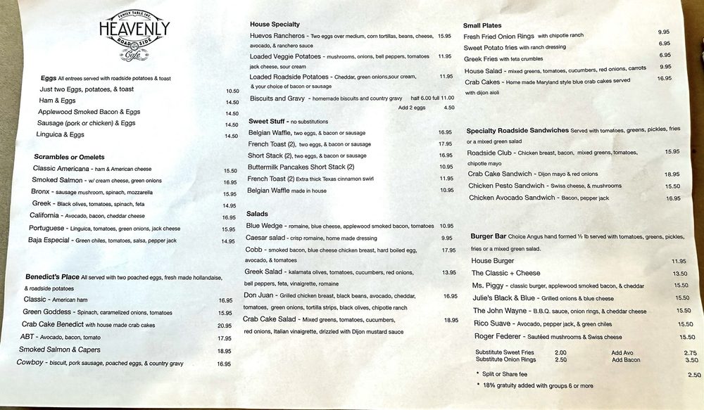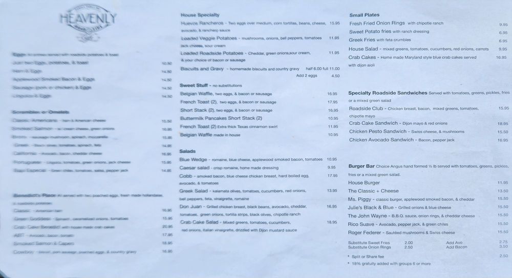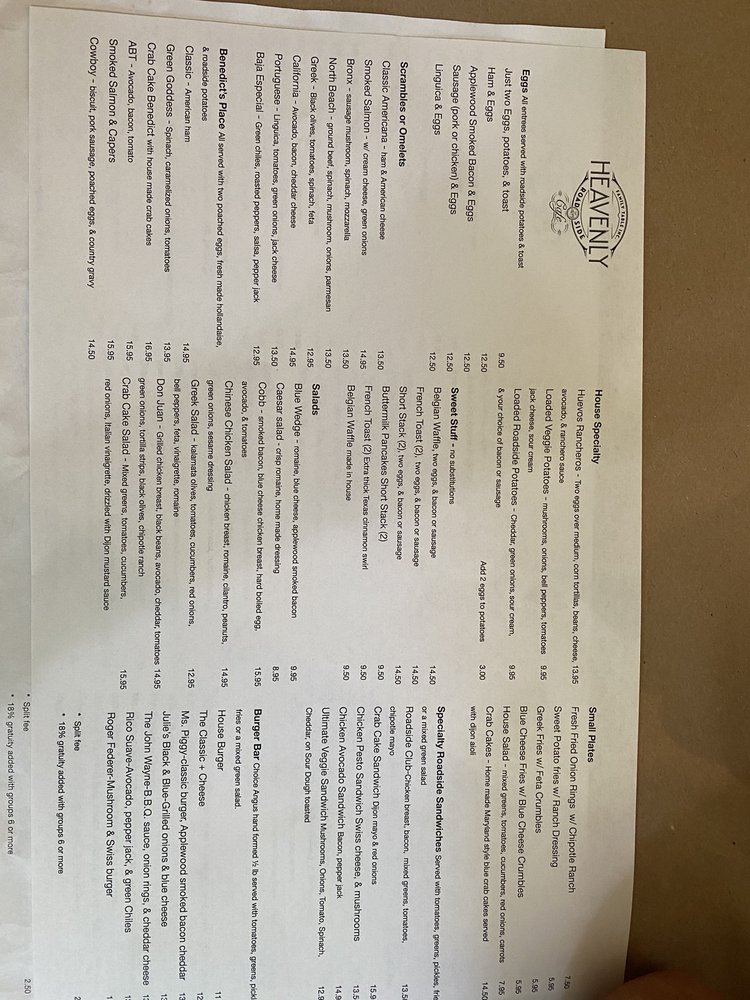 Heavenly Roadside Cafe, located in Scotts Valley, CA, is a cozy American cafe specializing in breakfast and brunch. With a wide range of options including vegan and vegetarian dishes, this cafe offers a welcoming atmosphere and thoughtful service. Customers praise the delicious menu items such as omelettes, sweet potato fries, crab cake salad, and waffles with seasonal fruit. The portions are generous, prices are reasonable, and the staff is friendly and attentive. Whether you're stopping by for a quick bite or a leisurely meal, Heavenly Roadside Cafe provides a satisfying dining experience with its home-cooked meals and comfortable setting. Don't miss out on the must-try dishes like the salmon egg benedict and crab cake benedict. A visit to this cafe promises a delightful culinary journey.